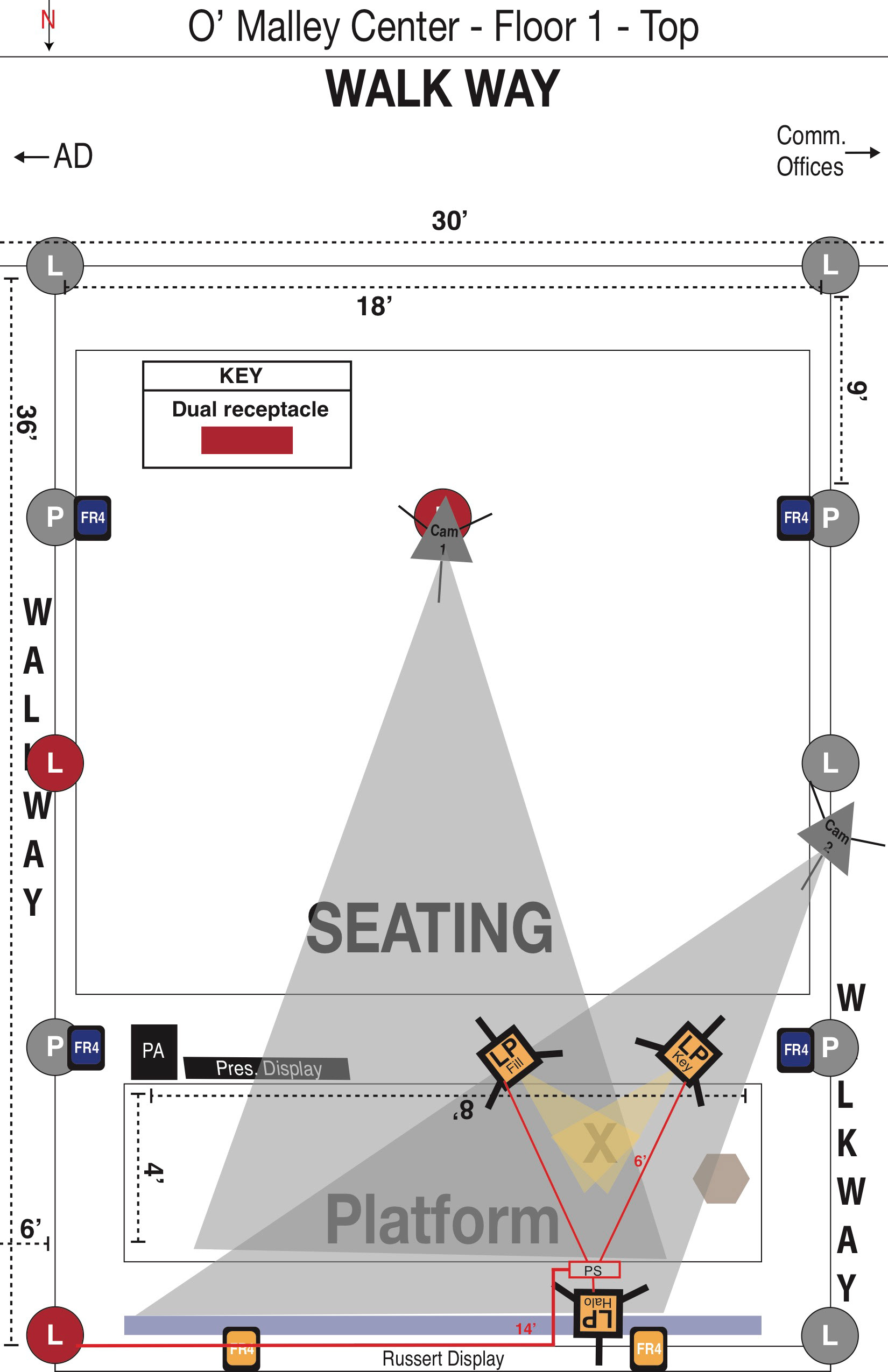 Lighting and video diagrams used to assist the crew and myself visualize the location in advance and coordinate the audio/visual aspects.
